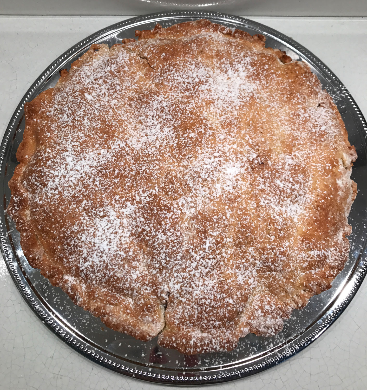Copri con l’altro disco di frolla. Sigilla bene i bordi piegando l’impasto verso l’interno, spolverizza il top con zucchero di canna e metti in forno.