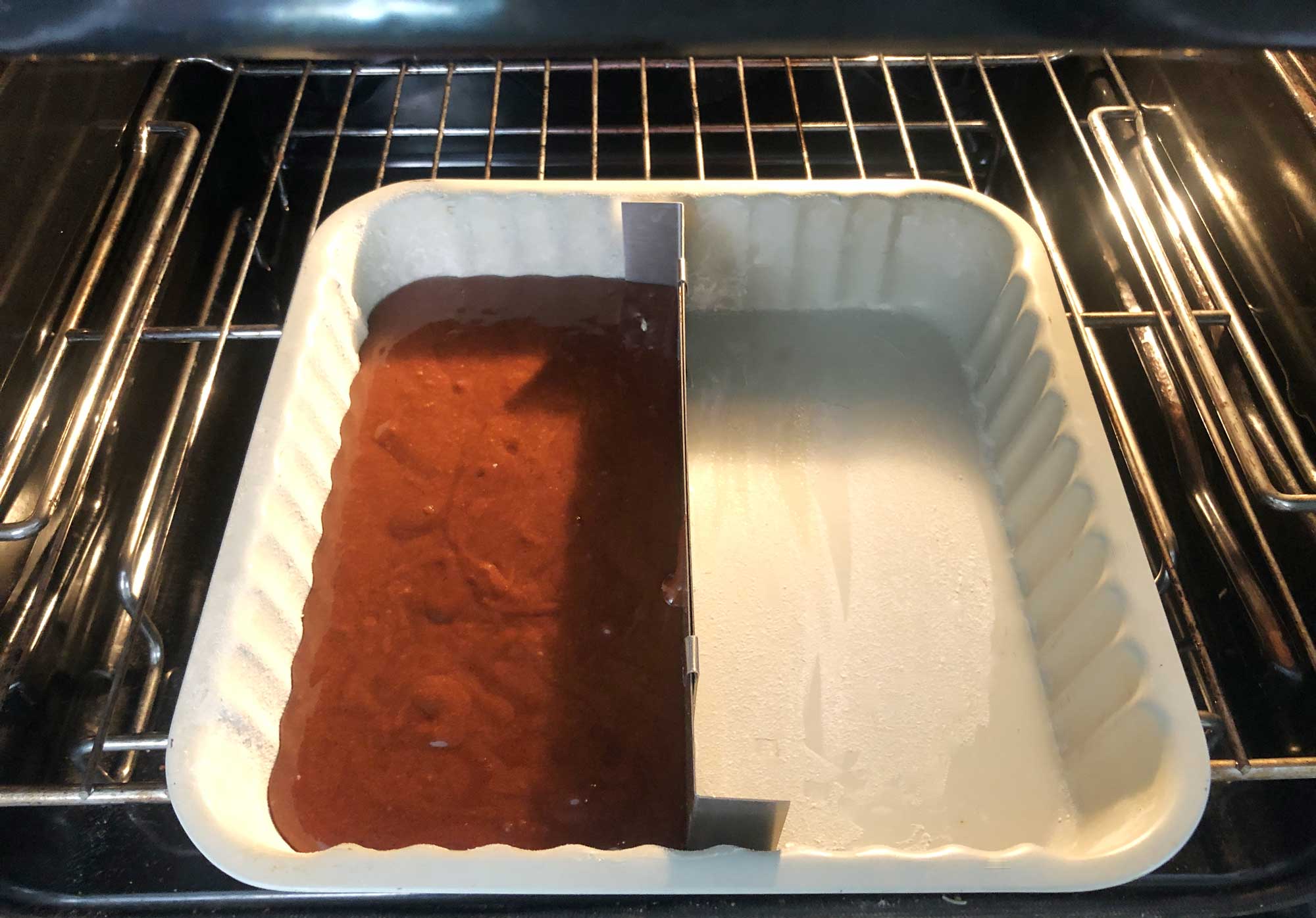 Nel frattempo metti in una ciotola il latte, lo zucchero e l’olio e frulla con un frullatore elettrico. Aggiungi il cioccolato fuso caldo. Incorpora la farina e infine il lievito.