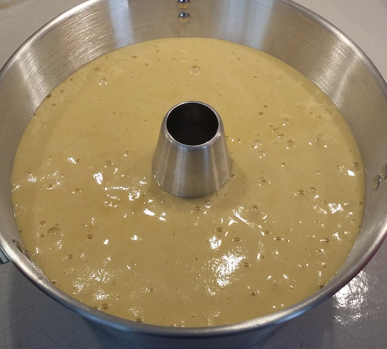 Versa il composto in uno stampo americano da chiffon cake senza imburrarlo e infarinarlo.