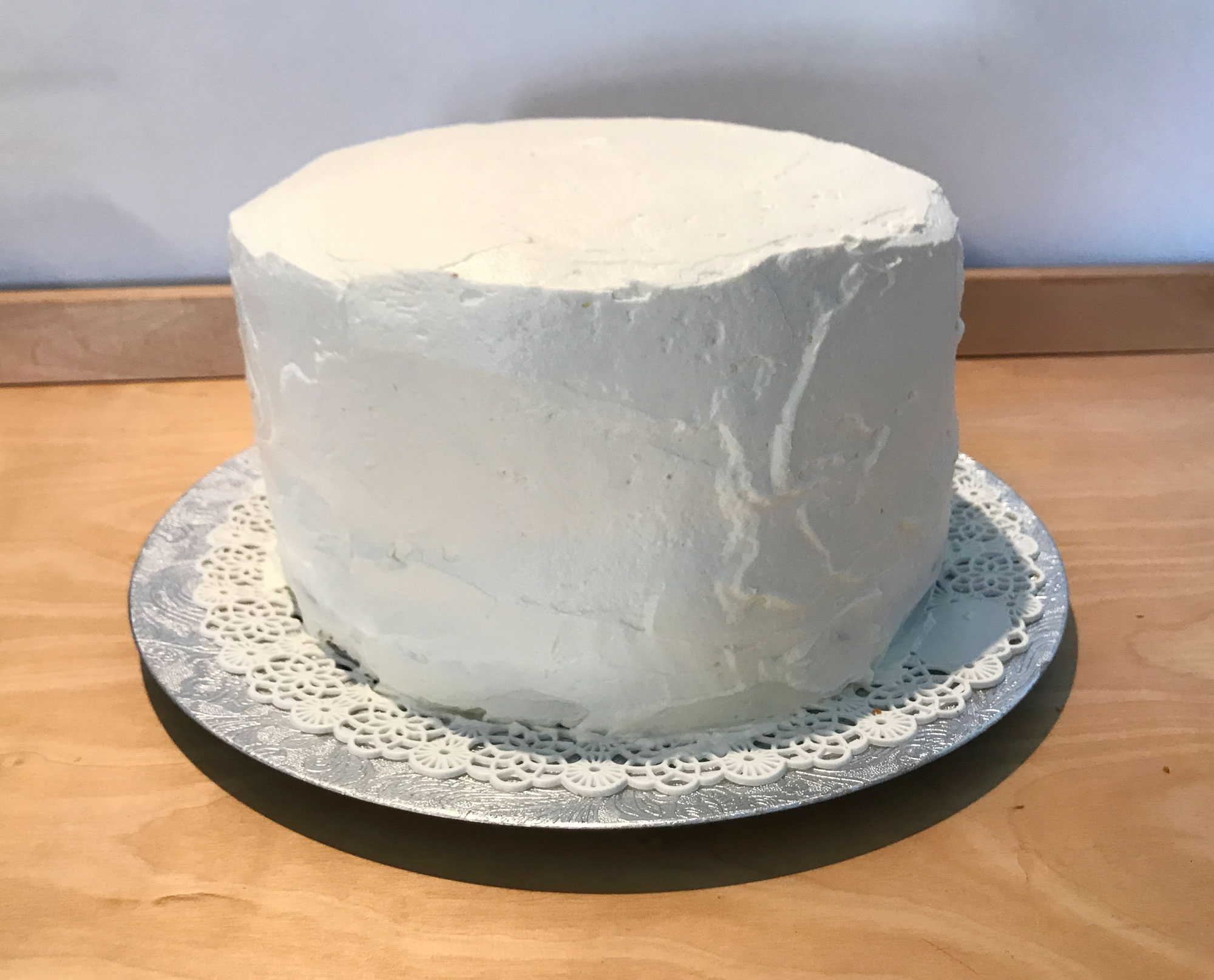 Ora ricopri la drip cake con la crema al mascarpone e metti la torta in frigo a rassodare per c.a. 3 ore.