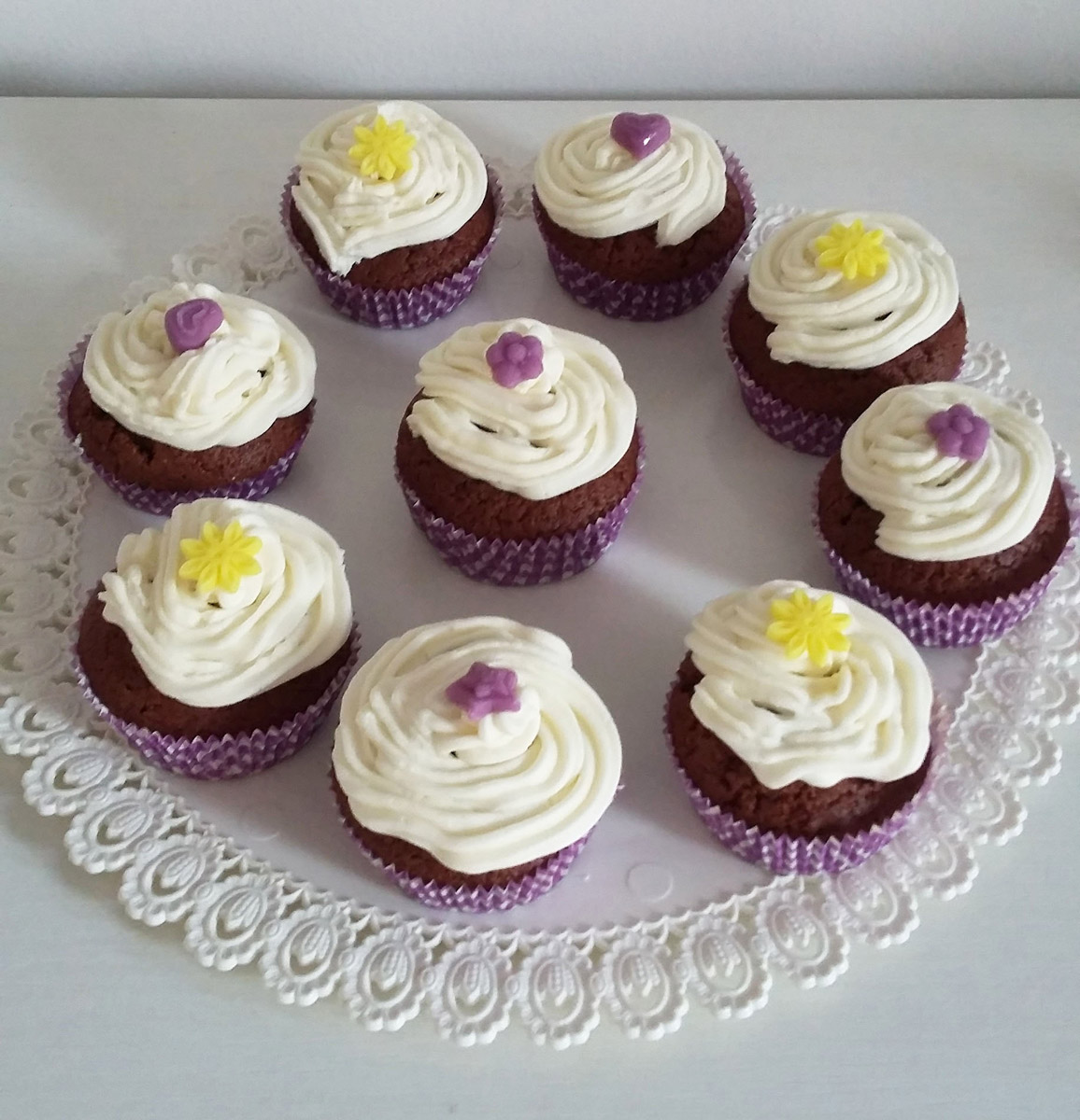If you prefer muffin more delicious, you can prepare a white chocolate frosting and decorate muffins with little sugar paste flowers.