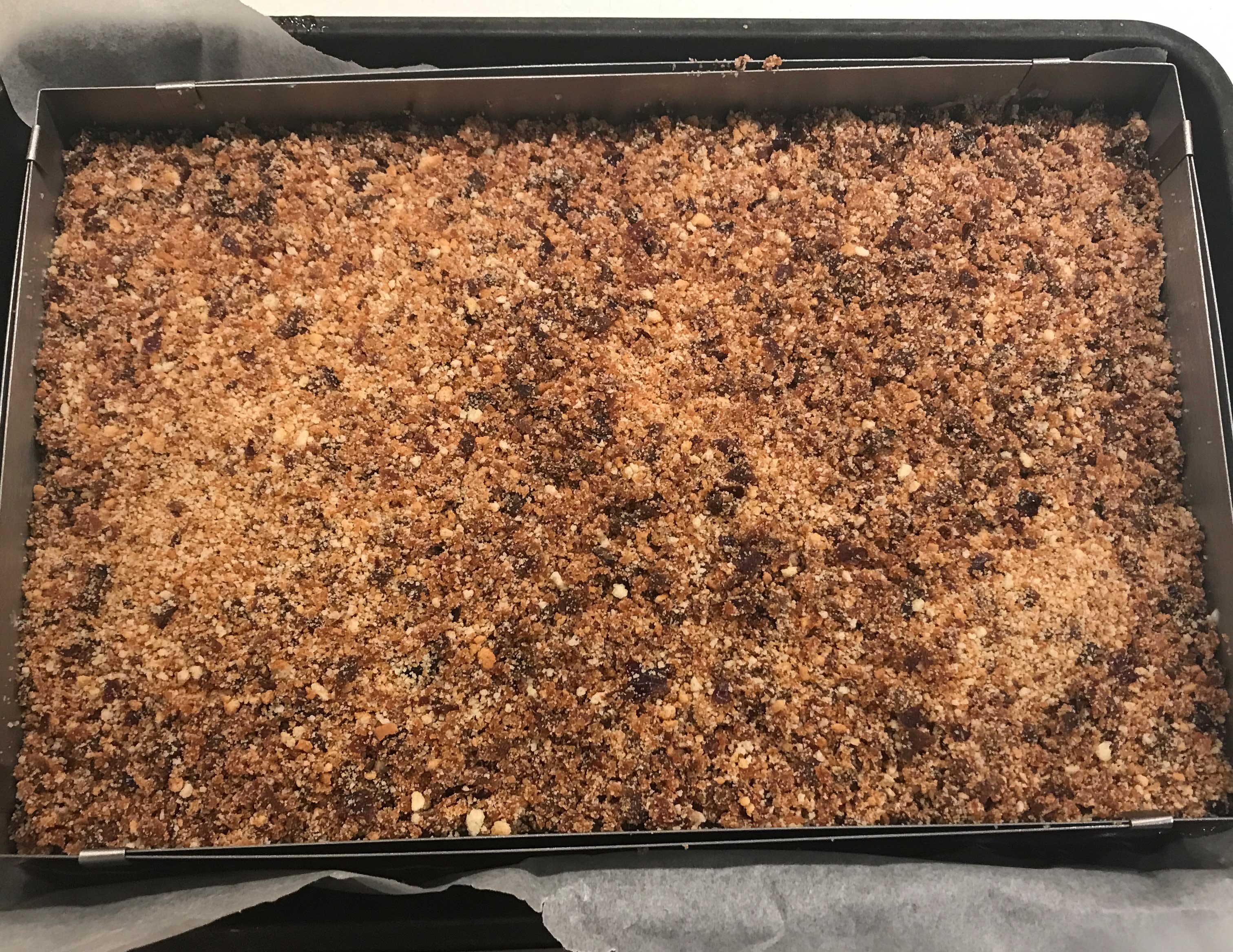 Infine frulla i biscotti insieme alle prugne secche in un mixer e versa il composto sulla crema di ricotta livellando bene con una spatola. Metti in frigo a rassodare per 8 h.