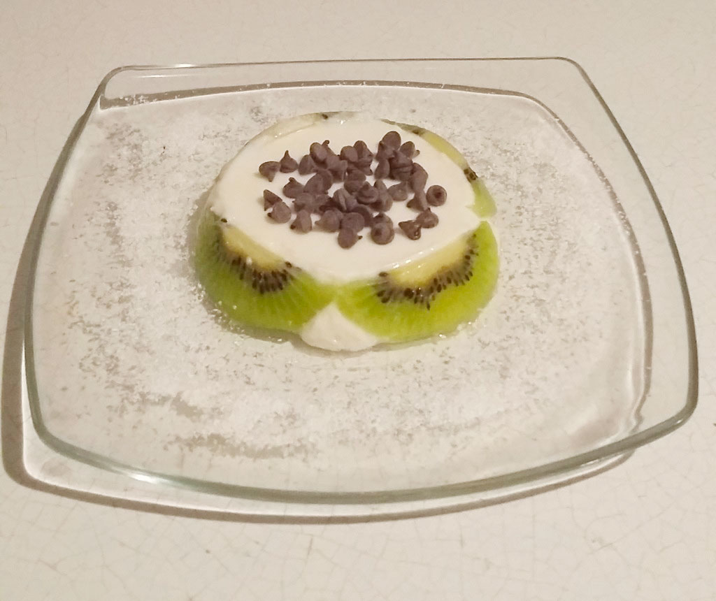 Servi cosparse di gocce di cioccolata o di farina di cocco e kiwi.