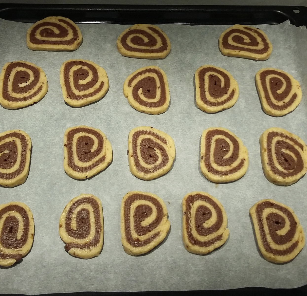 Metti in forno le girelle e cuoci. Non ti resta che attendere che i tuoi biscotti bicolore siano pronti.